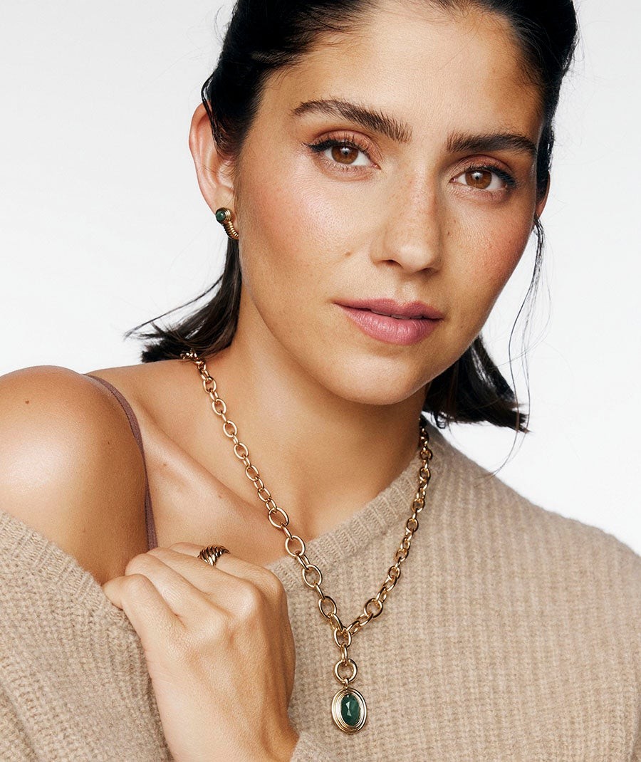 Metal hipoalergénico bañado en oro 18kt y jade