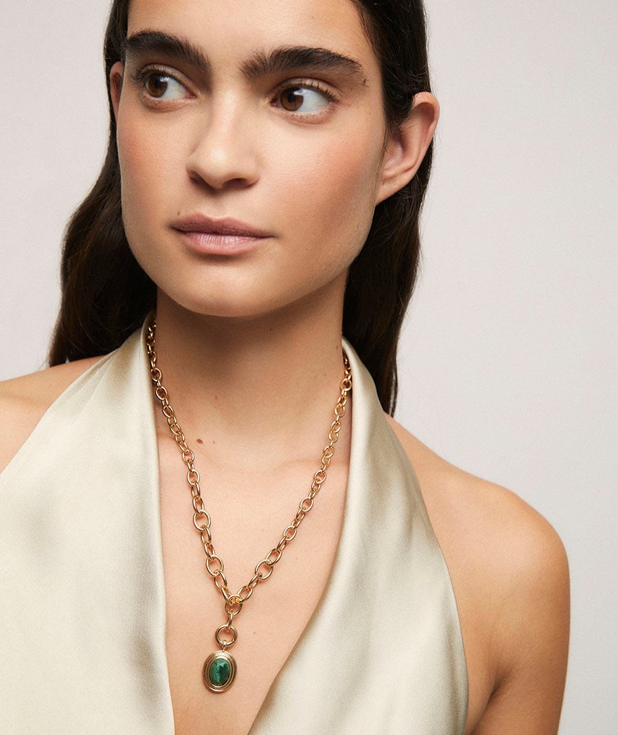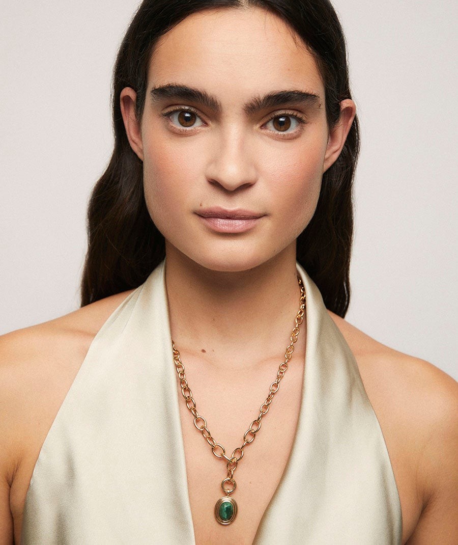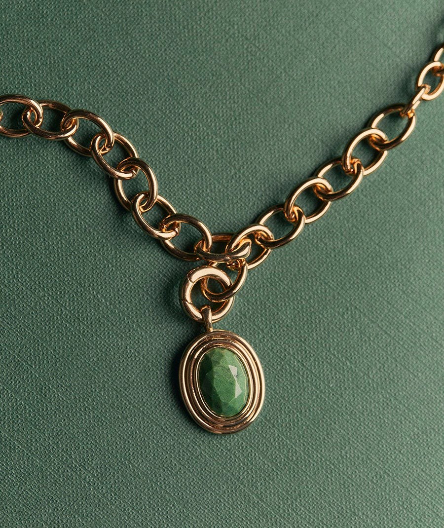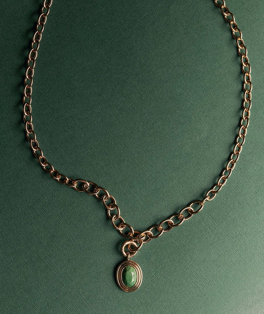 Colgante chapado en oro 18kt con jade verde africano