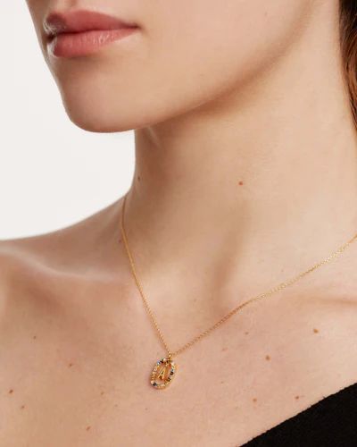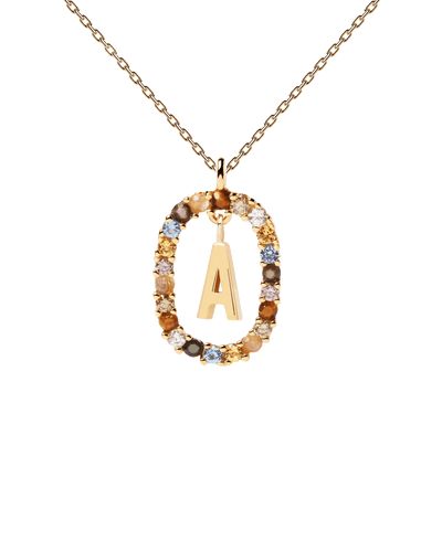 Collar de inicial A en plata con baño de oro, rodeada de piedras de colores