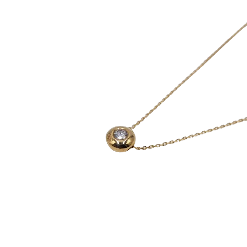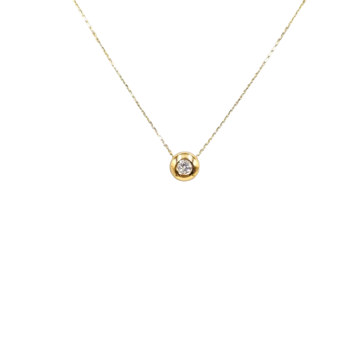 Cadena de oro de 18kt con colgante tipo chatón y un diamante de 0,15 cts.