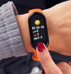 Pulsera de actividad con correa azul de silicona y correa naranja de silicona de regalo fácilmente intercambiable.