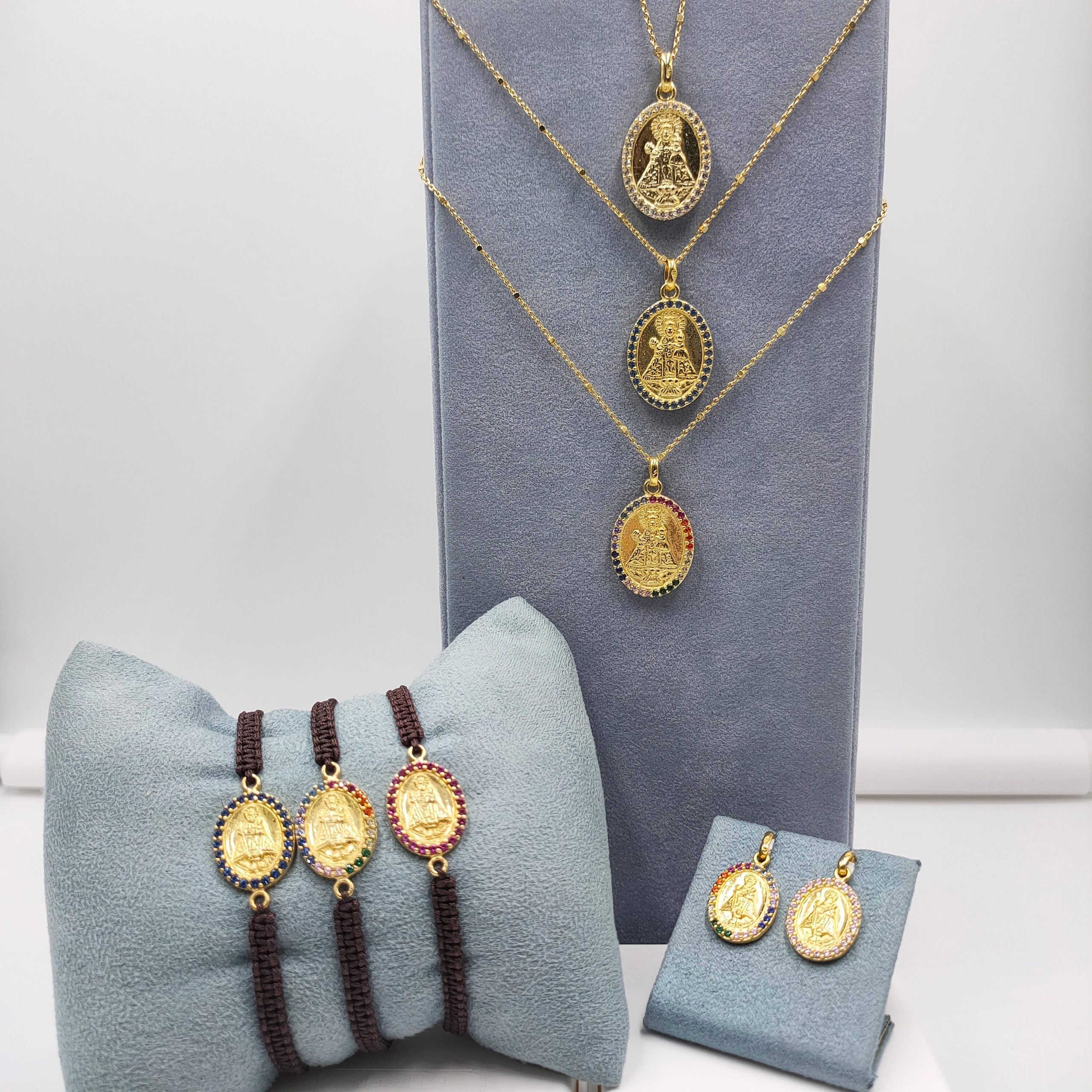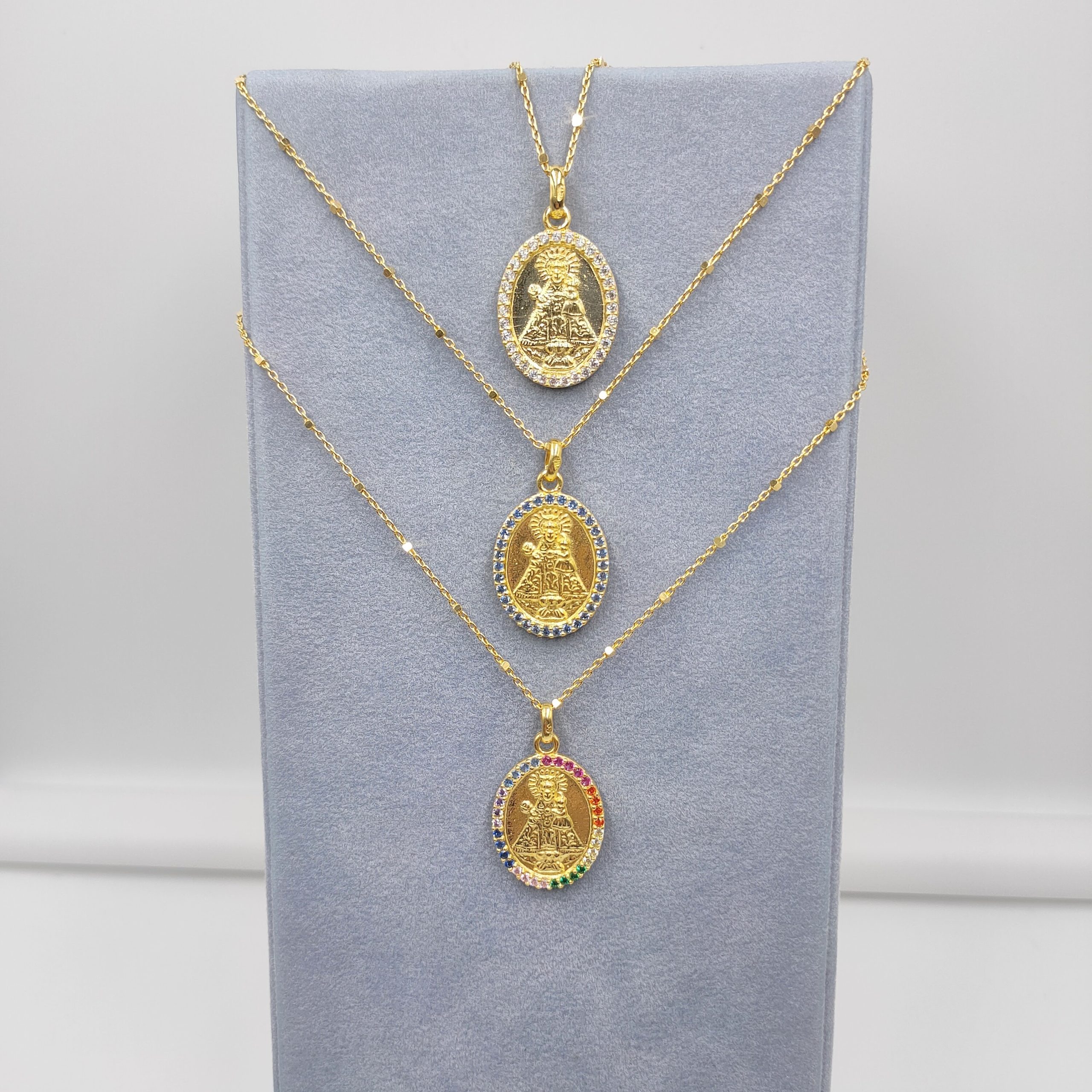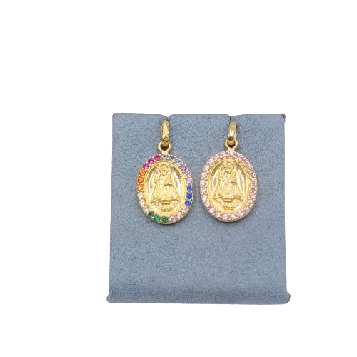 Medalla de Covadonga en plata 925 chapada en oro rodeada de circonitas
