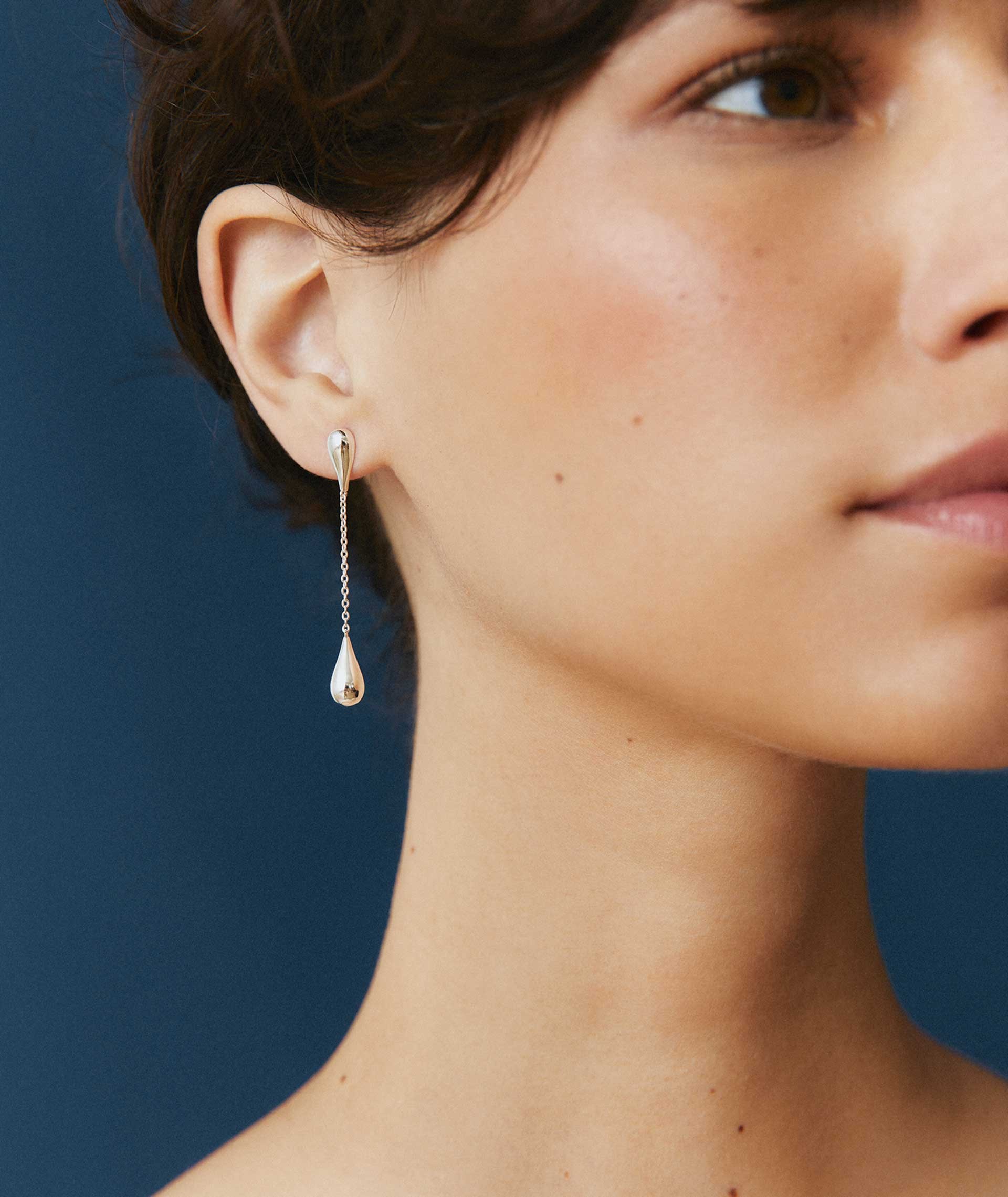Pendientes Chapado plata de ley 925 largos con motivo de gota y cierre a presión