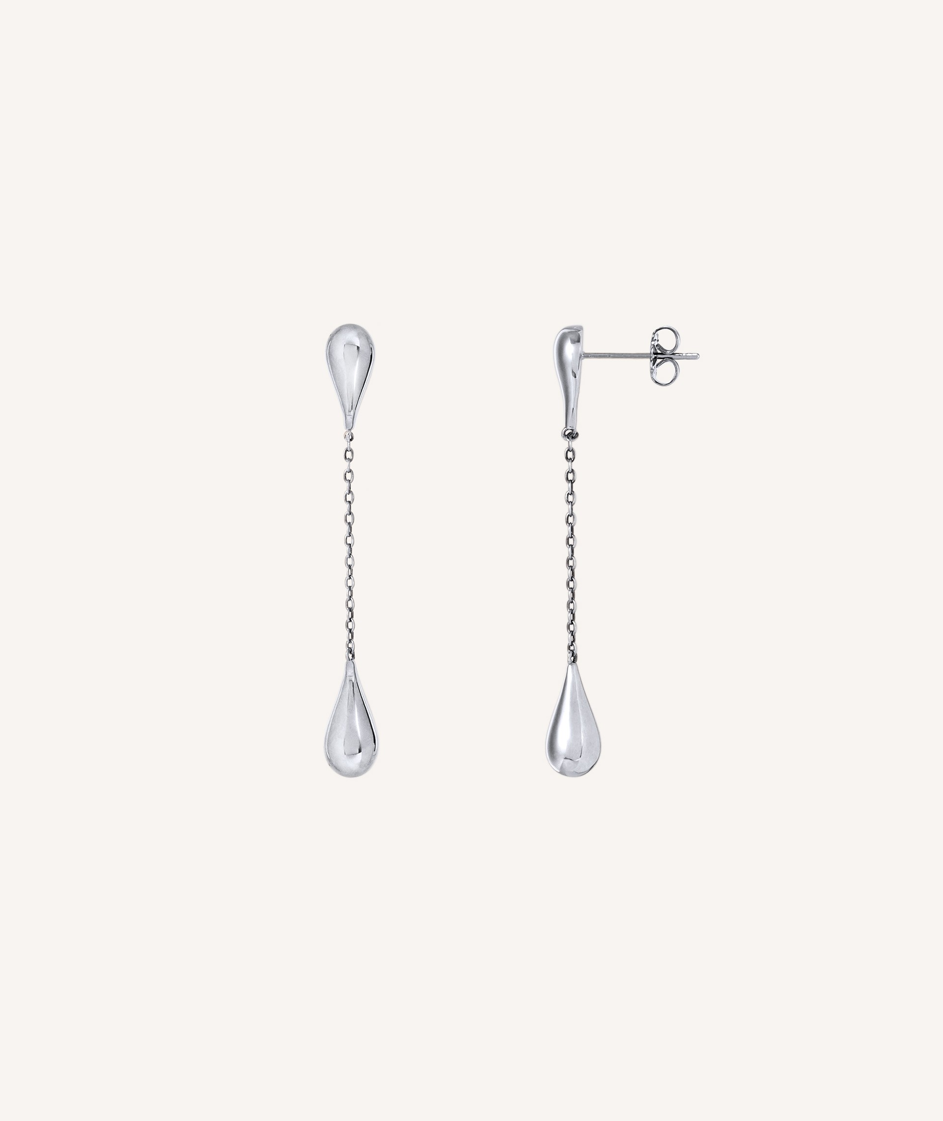 Pendientes Drop Chapado plata de ley 925 largos con motivo de gota y cierre a presión