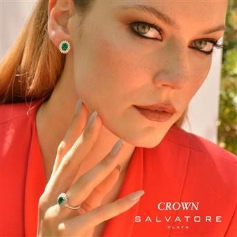 Pendientes plata rodio óvalo circonita nano verde circonitas alrededor blancas