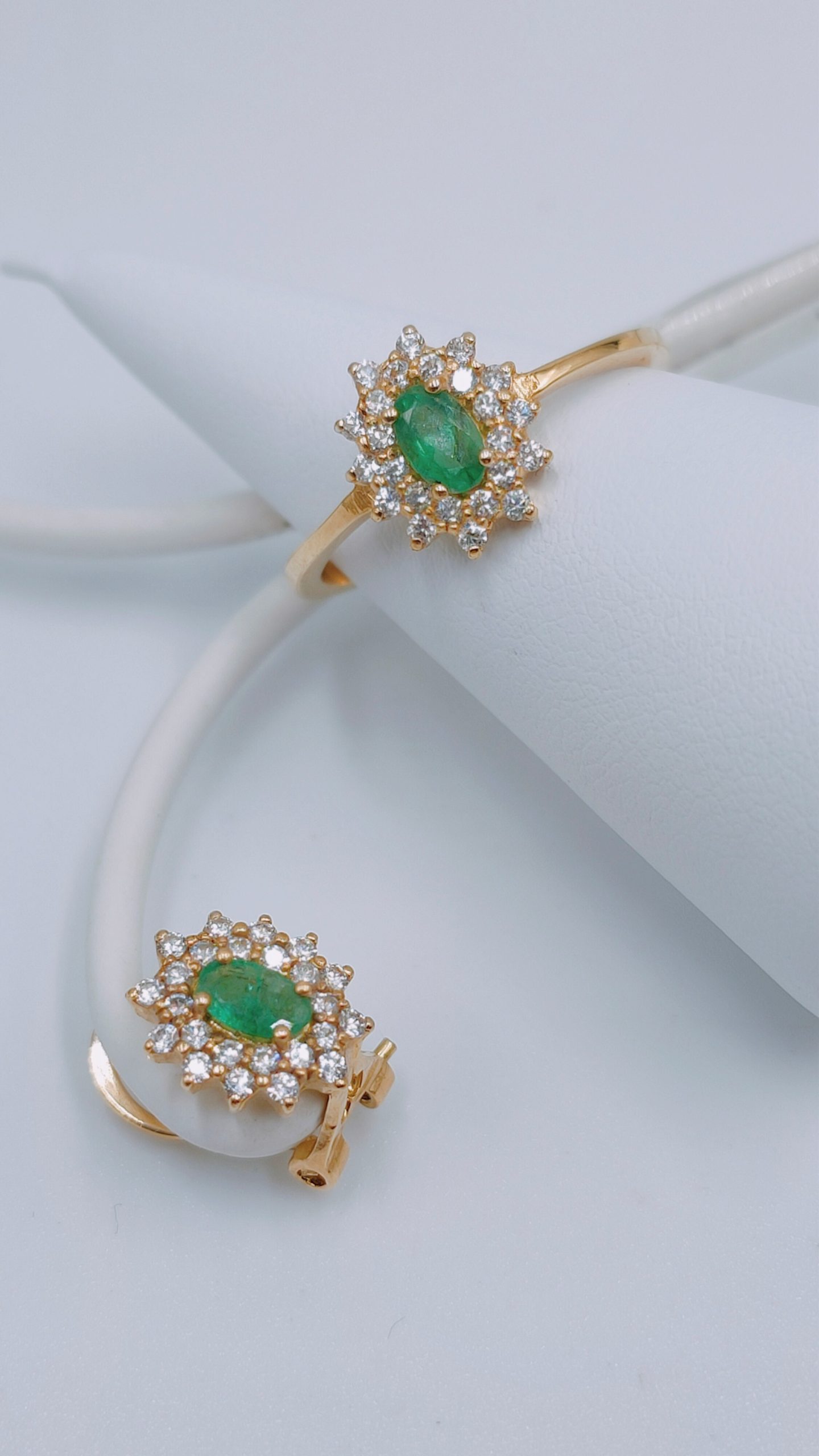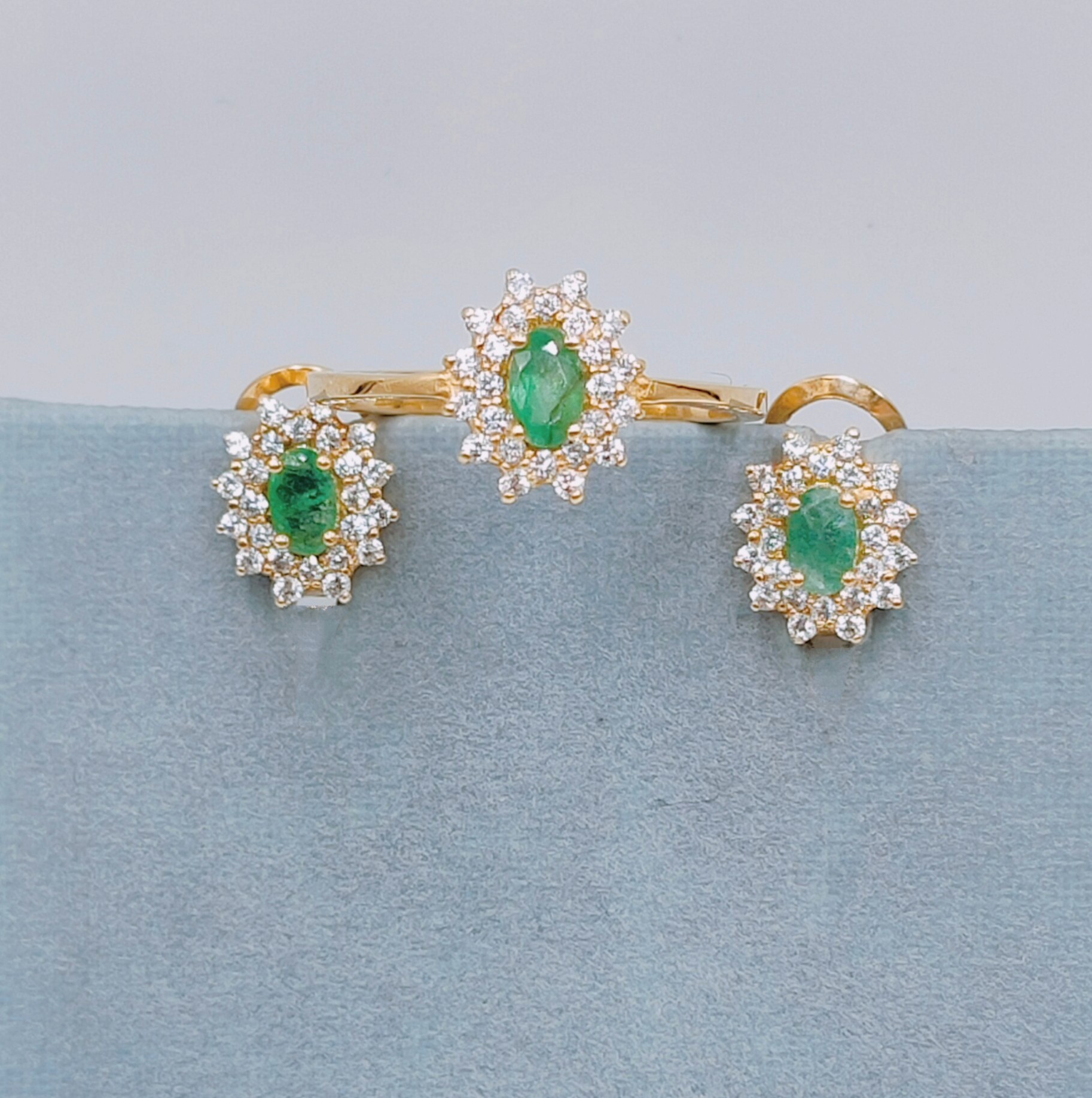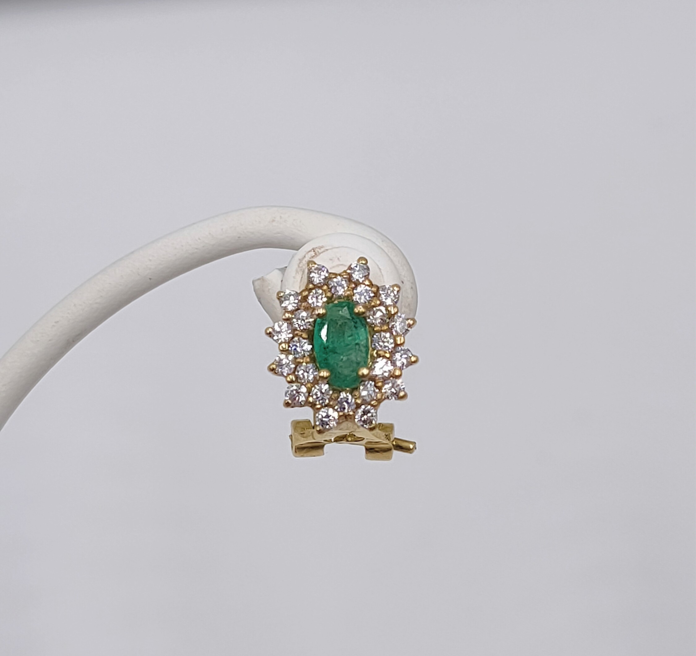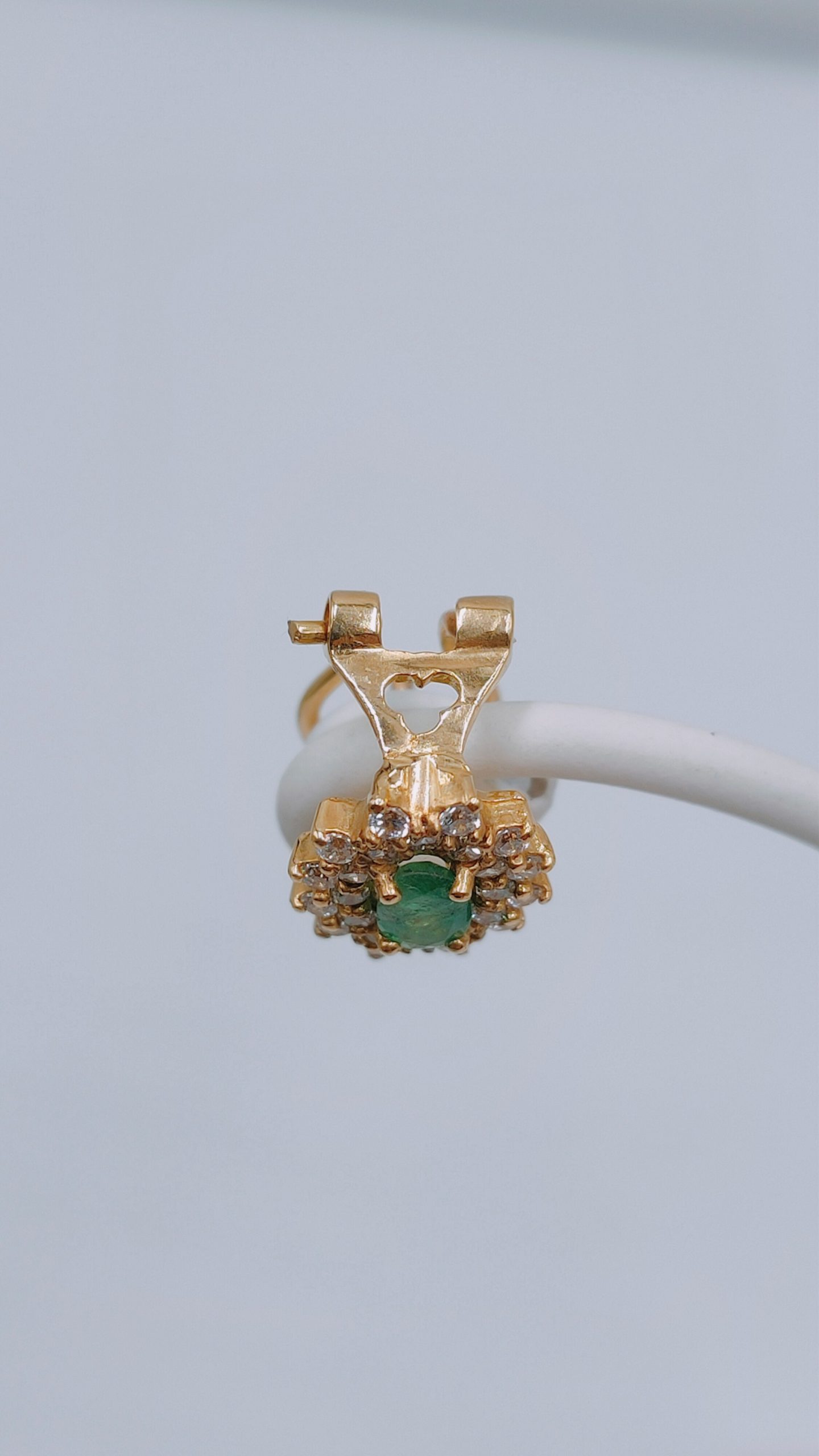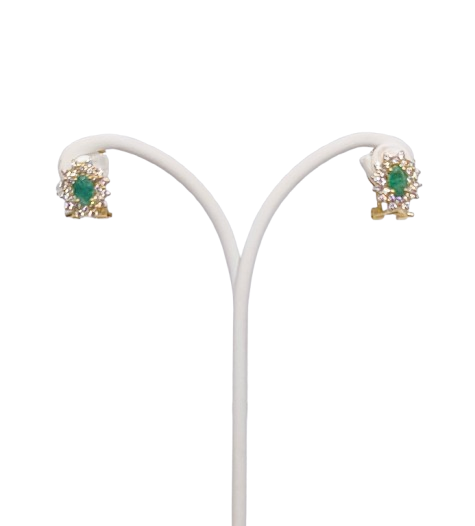Pendiente de oro 18kt con roseta de circonitas verde y blancas